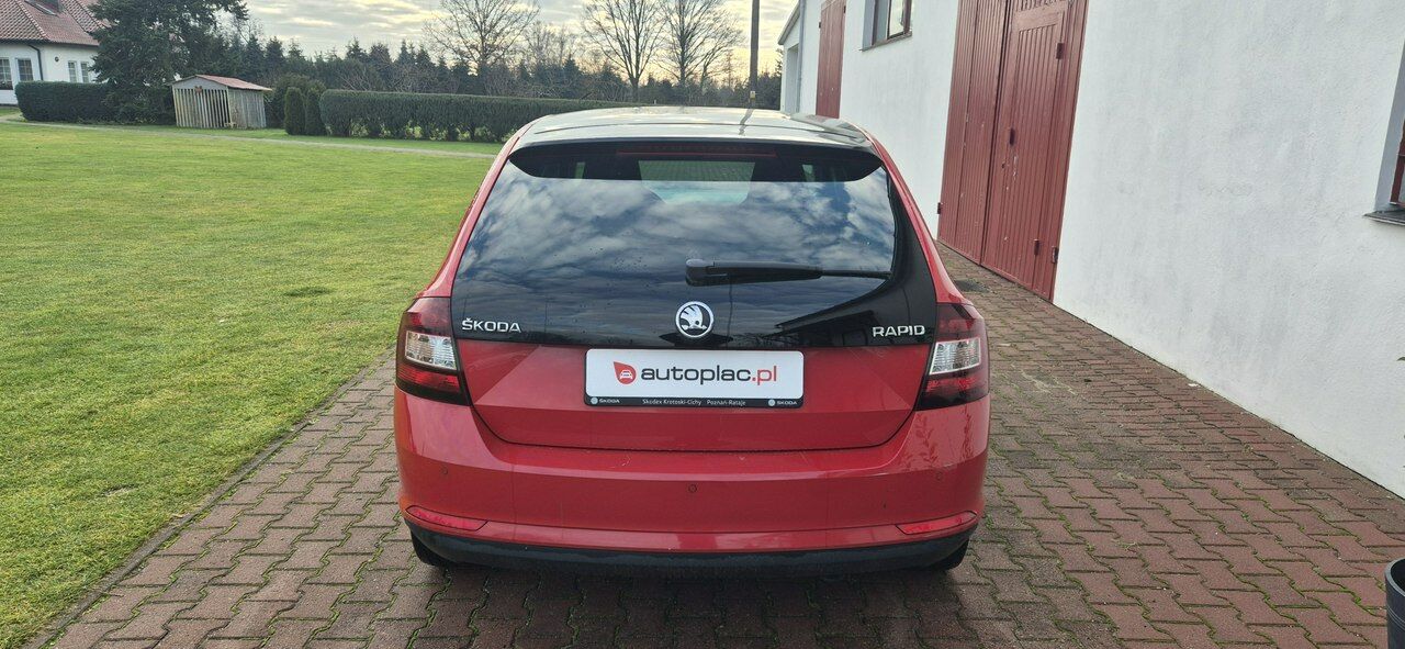 Witamy serdecznie!Przedstawiamy Skodę Rapid. Pojazd napędzany silnikiem benzynowym poj. 1.2 tsi o mocy 105hp, połączony z manualną 6-biegową skrzynią biegów w napędzie na przednią oś.